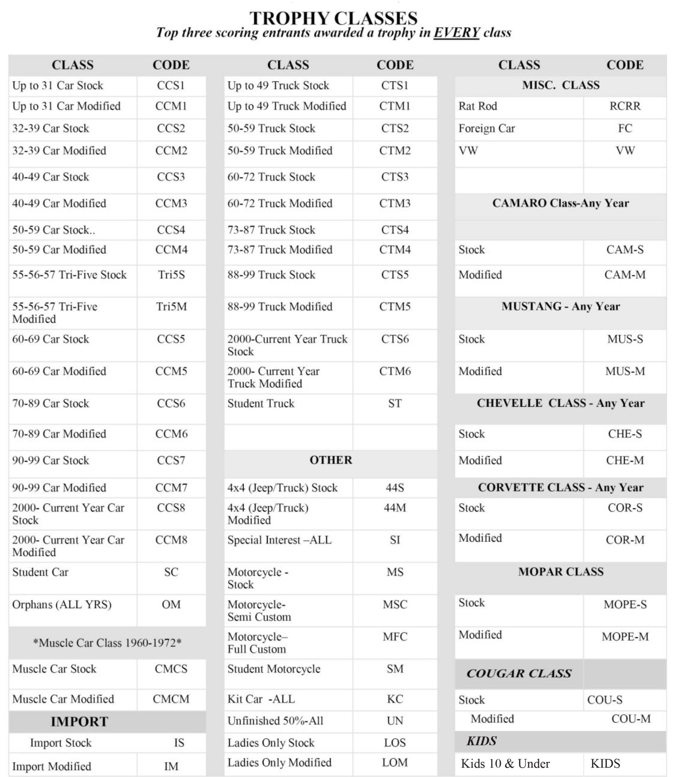 - Modified Class – Vehicles with aftermarket modifications, custom builds, or performance enhancements